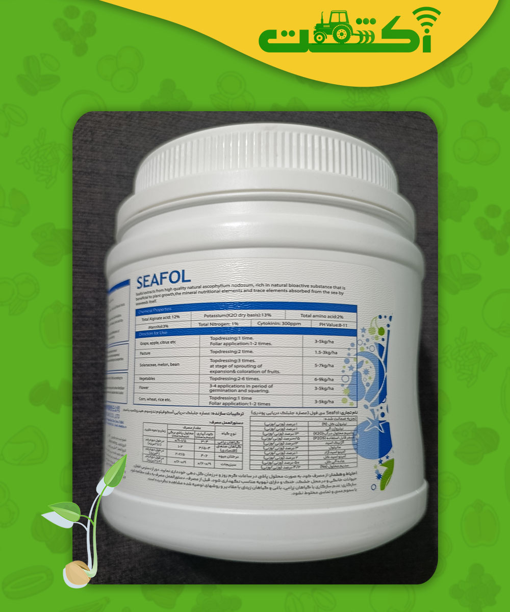 کود جلبک دریایی پودری خارجی سیفول (SeaFol) یک ضد استرس و یک محرک رشد بسیار قوی و قابل رقابت با برندهای برتر بازار که قیمت هایی بین 3 تا 6 میلون دارند که با یک بار آزمایش در کنار بهترین برندها ، شخصا به این نتیجه خواهید رسید.